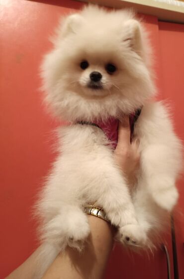 Satılır: Saf dişi ağ Pomeranian (Şpits) Çox sevilərək və qayğıyla böyüdülmüş, ev şəraitində baxılan saf dişi Pomeranian satılır. Tam sağlam, mehriban və uşaqlarla çox yaxşı yola gedən bir itdir. ...