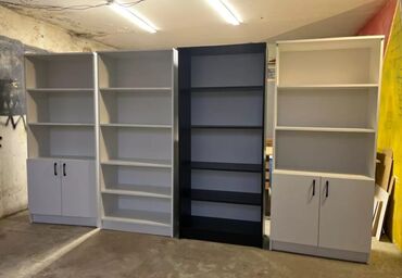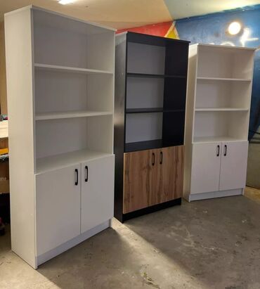 - Rənglər: tam ağ, ağ-qara haşiyəli, qara-göy tonlarında, qara karkas + ağ rəflər, qara karkas + palıd fakturalı qapılar