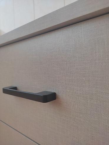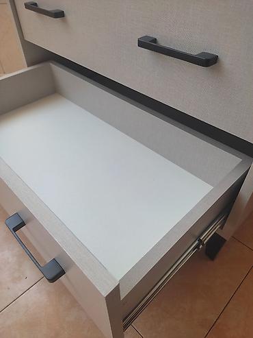 Mebel: Müasir komod/dolab - Dizayn: Laconic & Minimalist üslubda, ağ ön hissələr və ağac teksturalı üst və yan panellər. Horizontal, ergonomik tutacaqlar. - Quruluş: 3 qapılı bölmə + 4 çekmece. Ge...