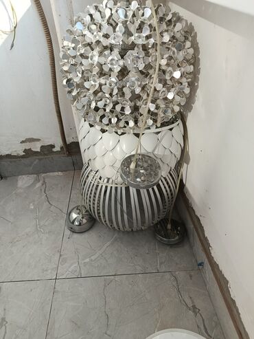 Tavan üçün 3ədəd dekorativ işıqlandırma 1) Bej-qızılı rəngli 5 qolulu lyustra - Material: metal gövdə, şüşə plafonlar (süd rəngi), bəzəkdə ağac və metal sferalar - Quraşdırma: tavan montajı, mərkə...