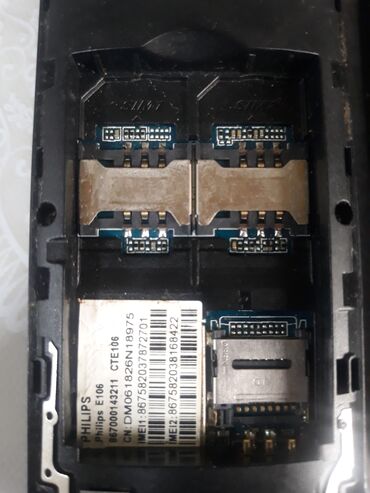 - Philips E106 (sol tərəfdə) – arxasında Philips E106/CTE106 etiketi görünür.