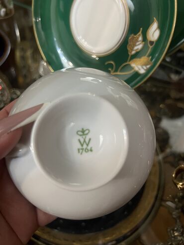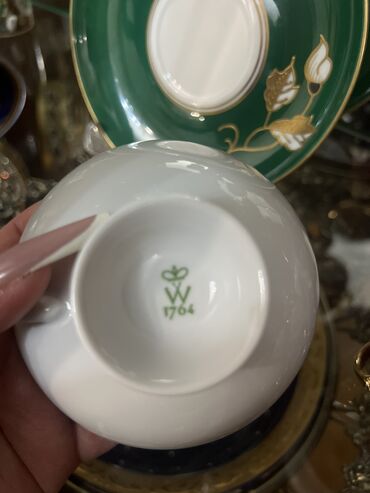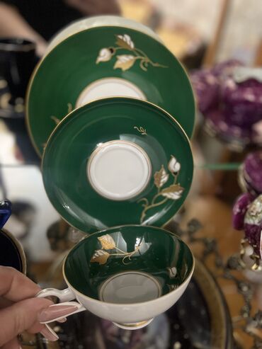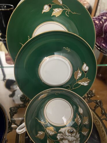 Çay dəsti, rəng - Yaşıl, Farfor, 6 nəfərlik, Almaniya