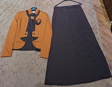 Komplekt: kofta + yubka - Kofta: açıq boz rəng, fermuarlı, uzunqol, nəfəsalan zolaqlı/mesh toxuma. Ölçü: L. - Yubka: ağ rəng, düz kəsim, dizə qədər, alt hissədə iç qatlı. Ölçü: S. Qeyd: Birlikdə ...