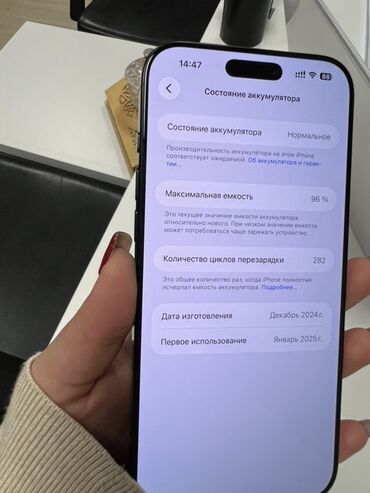 Apple iPhone 16 Pro Max 256 GB. (Pil 93%) Telefon ideal veziyyetdedir temirde olmayib. 8 ayın telefonudur. Xanim ishledib sexsi telefonumdur ve yeni telefon aldigim ucun satiram. Bu telefonu ma...