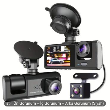 📌Avtomobil üçün nəzərdə tutulmuş bu videoqeydiyyatçı yolda baş verən hadisələri qeydə almaq üçün ideal vasitədir.(fotoda çəkmək olur) 3 obyektivə malikdir ki, bu da ön, arxa və salon görünüşünü eyni anda qeyd etməyə imkan verir. Geniş bucaqlı linzalar sayəsində geniş sahəni əhatə edir. Quraşdırılması asan olan bu cihaz avtomobilin şüşəsinə vantuz vasitəsilə bərkidilir. Yüksək keyfiyyətli video qeydiyyatı təmin edir və yaddaş kartı dəstəkləyir.