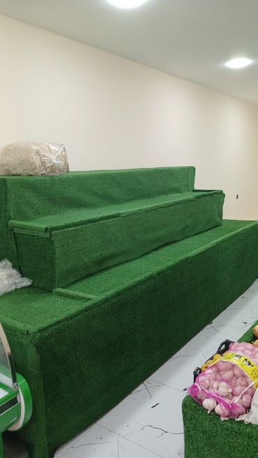 - Üst örtük: yaşıl süni ot (xalça tipli), meyvə-tərəvəzin sürüşməsinin və zədələnməsinin qarşısını alır