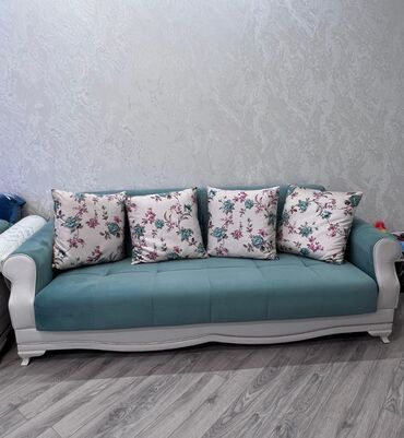 Dekorativ güllü yastıqlar divana romantik və təravətli bir görünüş qatır, firuzə tonları isə məkanınıza sərin, zövqlü atmosfer bəxş edir. Qonaq otağı, studiya və ya geniş dəhlizlərdə mərkəzi mebel kimi gözəl seçimdir.Qiymətdə razilaşmaq olar.Vatchapa yaza bilərsiniz
