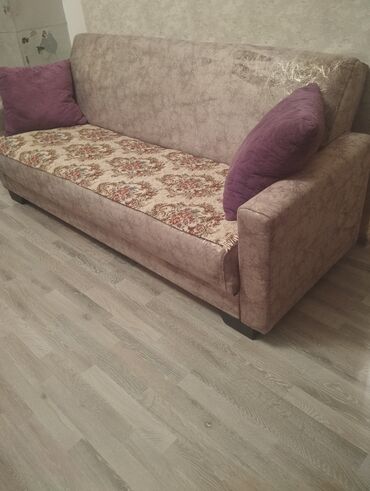 4 nəfərlik yumşaq divan bej tonlarında, xırda naxışlı faktura