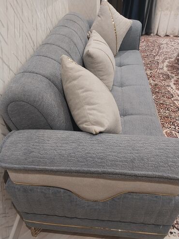 Qeyd: Şəkillərdə göründüyü kimi, ümumi komplekt bir ədəd 3 nəfərlik divan və 3 dekorativ yastıqdan ibarətdir.