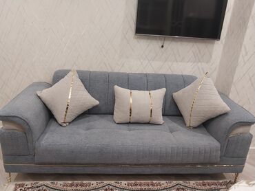 Məhsul: Yumşaq oturacaq dəsti – 3 nəfərlik divan yeni alib bir aydir 750manata alinib otaqa olcu uyqun olmadiqi ucun tecili satlir qiymet 350m olcu 2.15parcasi yumsaq temizlemeyede eladir