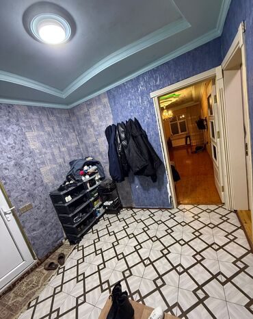 - Dəhliz/antre: Geniş giriş hissəsi, dekorativ tavan karnizi, parlaq işıqlı spot, keramika plitə döşəmə (geometrik naxışlı). Geyim və ayaqqabı üçün rəf/askar.
