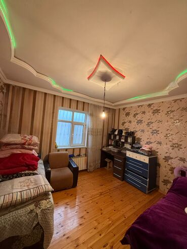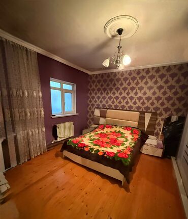 - Yataq otağı 2: Geniş otaq, klassik çilçıraq, taxta döşəmə, pəncərə, radiator, pərdə və mebel üçün kifayət qədər sahə.
