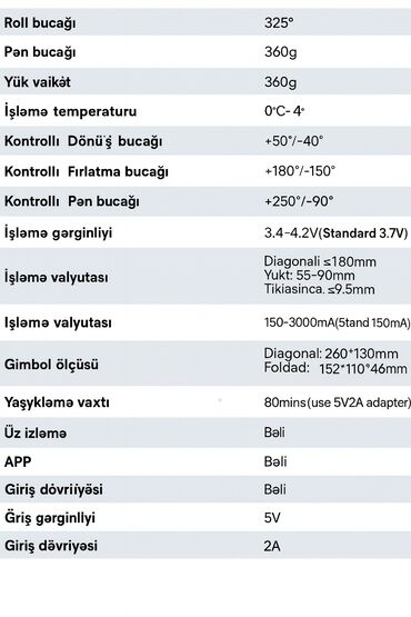 Smartfon üçün 3 oxlu stabilizator gimball