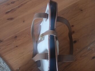 Çanta,yeni.ag rengde.2 kemeri var,biri deriden,digeri qizili reng
