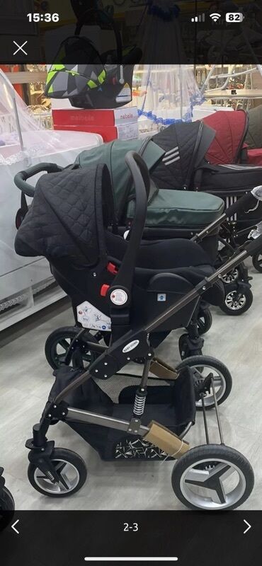 Uşaq arabası – transformasiya olunan model - 2-si 1-də konstruksiya: beşik tipli lyulka və gəzinti bloku. Hər iki blok irəli-geri (üz-üzə və ya hərəkət istiqamətinə) çevrilə bilir. - Rəng: bej/qar...