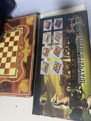 3‑ü‑1‑də taxta oyun dəsti – şahmat, dama və nərd