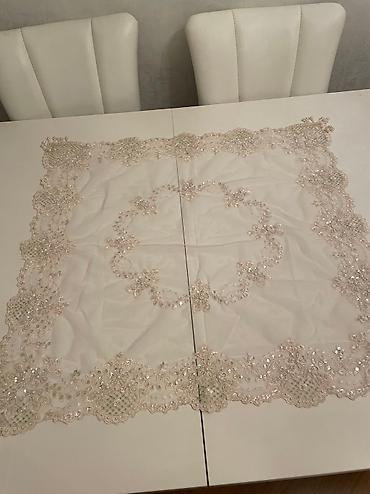 "pasha" logolu ag sufre 5 manat,olculeri 1.50x1.50 sm,-5 manat. iwlenmiw ipek sufre,yaxwi veziyyetdedir,uzunlugu 2 m,-3manat. ,bileceri,agsaray yaxinligi.