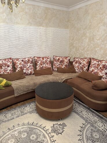 Mebel: Üçnəfərlik divan - Rəng variantları: qəhvəyi və boz - Parça: yumşaq məxməri toxuma, şaquli tikiş detallar - Dizayn: enli oturacaq və bel hissəsi, qollarda qızılı dekor elementləri - Ayaqlar...