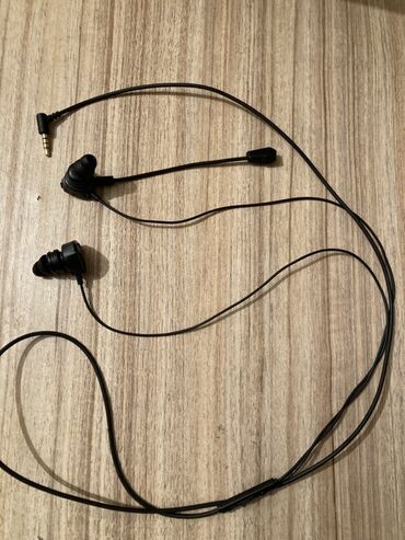 - İki qulaqcıq arasında incə kabel; xətt üzərində idarə düyməsi görünür (start/pauza və ya zəng idarəsi üçün).