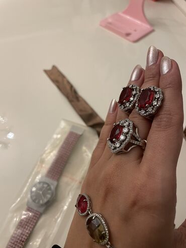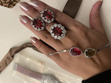 Brilliant modeli dəst sırğa üzük boyunbagi kulon sep qızıldan seçilmir qaşlar brilliant organka təbii dağ bülluru ve yaqut qaşlar Prob 925 gümüş 18k ag qizil örtüklə Cеребряный комплект кольцо с...