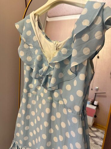 38-40 bədənə uyğundur. 2 dəfə geynilib. Arxası zamokdur. Materialı qalındır. Paltar qısa qaldıqı üçün ayaqların açmışdım ama isdəyən yenidən qatlayıb yığdıra bilər.