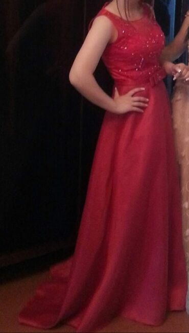 Qırmızı gecə geyimi – zərif, uzun, yan dəliyi olan model -250 azn alinib -70 azn satilir -2defe geyinilib