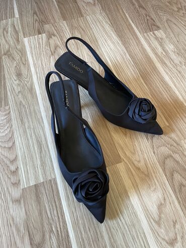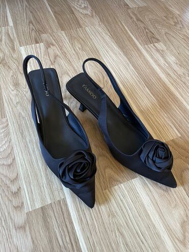 MARSEDO qadın gündəlik stiletto ayaqqabısı İstifadə: Sadəcə 1 dəfə geyinilib. Ölçü: 37 Qiymət: 60 azn alınıb, 25 azn satılır. - Model: Femme, sivri burunlu, arxası açıq (slingback) - Üst hissə: ç...
