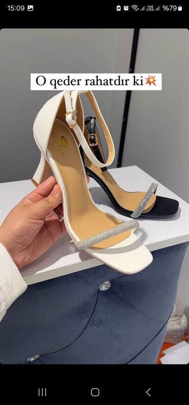 Ayaqqabı ölçü 38, saten, keyfiyyetli ve debli model,1defe geyilib, 25azn, çox rahatdır.
