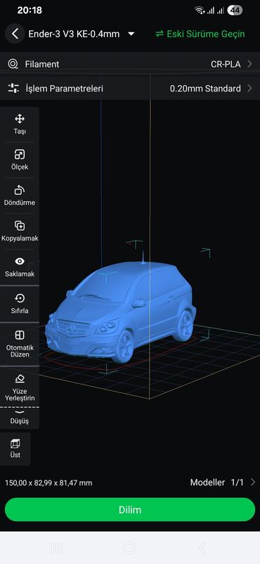 3D çap edilmiş mini maşın maketi - Model: Kiçik hetçbek tipli