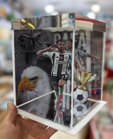 Futbol mövzusunda 3D dekorativ kub - Material: şəffaf akril korpus