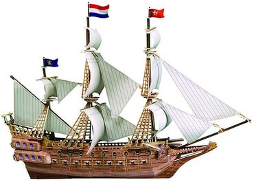 Dekorativ yelkənli gəmi maketi - Material: taxta konstruksiya, laklı səth; parça yelkənlər, iplə hazırlanmış dirək və ştaksel qurğuları - Üç dirəkli klassik yelkənli dizayn, detallı bort pəncərələ...