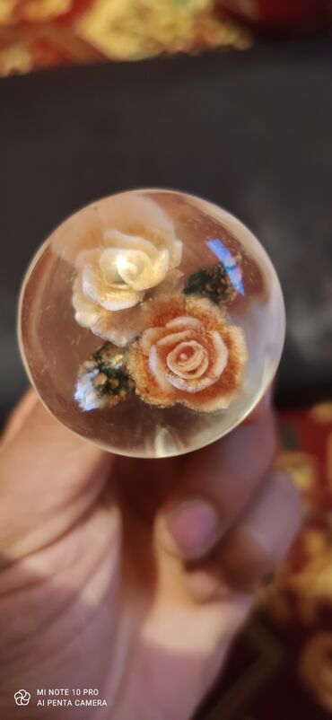 - Dizayn: içərisində iki ədəd 3D gül kompozisiyası (krem və narıncı tonlarda), yaşıl yarpaqlı dekor