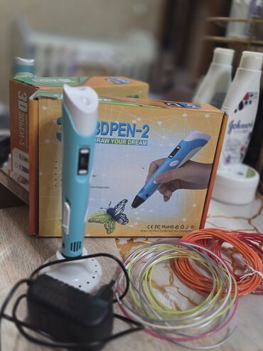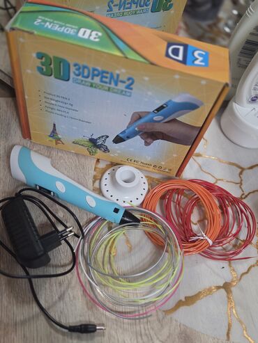 3D rəsm qələm dəsti – 3DPEN-2 Məhsul: 3D PEN-2 (Draw Your Dream) Qutuda: - 3D qələm (mavi/ağ korpus, LCD ekranlı) - Şəbəkə adapteri (DC qoşulma) - Qələm altlığı - Çoxrəngli plastik filamentlər (1....