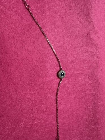 - Gümüşü rəngdə zəncir və “nazar” (göz muncuğu) tərzində dairəvi asqı. Asqının ətrafı xırda parıltılarla bəzədilmiş görünür.