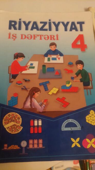 - Riyaziyyat – İş dəftəri 4. Toplama-çıxma, vurma-bölmə, ölçü vahidləri, vaxt və kütlə, kəsrlər, həndəsi fiqurlar və çoxluq anlayışları üzrə müxtəlif səviyyəli çalışmalar. Vizuallıqlar: kublar, şablonlar, cədvəllər, diaqram və ölçü alətləri təsvirləri ilə praktik tapşırıqlar.