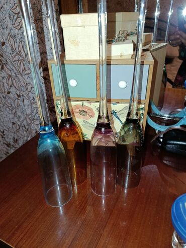 4 ədəd mavi şüşə salat qabı, hamısı birlikdə 5 Azn. Vəziyyəti yaxşıdır, çat və qırıq yoxdur.