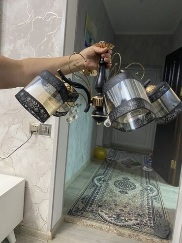 - Montaj: tavan üçün asma baza və zəncir/qayka hissələri komplektdə görünür