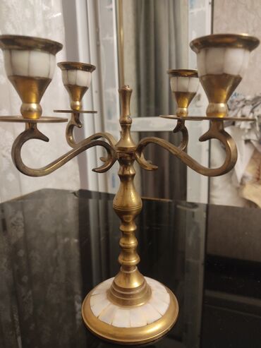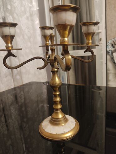 Estetik görünüşü ilə interyerə zəriflik qatan, şam işığını bərabər paylayan dekorativ kandelabr.