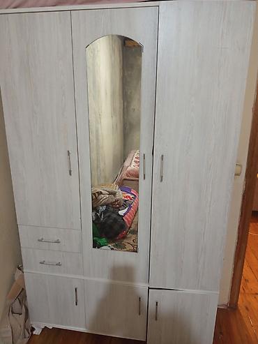 Açıq krem rəngdə 4 qapılı paltar şkafı - Ön hissədə 2 böyük güzgü