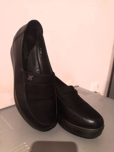 Qadın loafer ayaqqabıları 1 dəfə geyinilib. - Rəng: qara - Material: süet görünüşlü üstlük, içlik süni dəri - Dizayn: üst hissədə qızılı metal aksesuar, dekorativ tikiş detalları - Daban: yüngül, ...