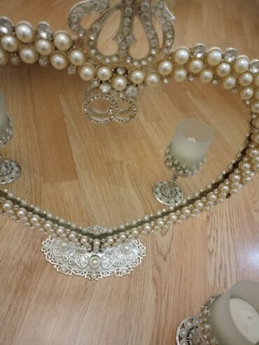 Nisan xina ucun yayliq bel bagi elcek şamdanlar.xina sebeti guzgu uzerlik qabiyla.bir sozle nişan xina ucun her sey daxil magaza baglandigi ucun satilir 1.dest qalib. hamsi tezedir. Qiymet 130 azn....