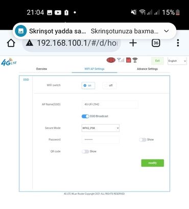 Huawei 5G modem Router Hem modem hemde router kimi istifade oluna biler tam işlekdi tezesini aldım deye satıram normal 5g giriş ile (250-350mbit) süret vere bilir