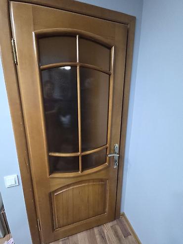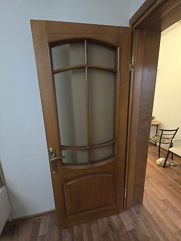 4 ədəd şüşəli, 1 ədəd bağlı MDF + Şpon qapılar Çox az istifadə olunub. Təzə qapı kimidir. Kilidləri də yenidir. Mətbəx və hamam qapıları: 210x82sm Digərləri (3 dənə): 210x85sm Çərçivələrin eni: 3 d...