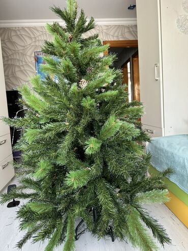 Süni Yeni il ağacı - Material: yüksək sıxlıqlı PVC iynələr, təbii şam görüntüsü - Rəng: tünd yaşıl - Konstruksiya: bölünə bilən gövdə, lay-lay açılan budaqlar - Dayaq: metal, 4 ayaqlı sabit baza -...