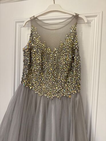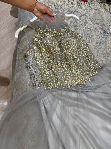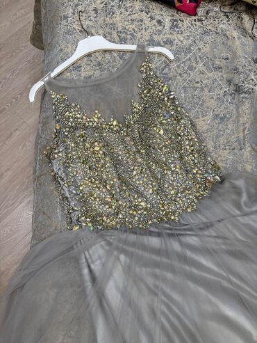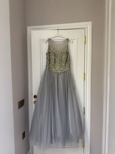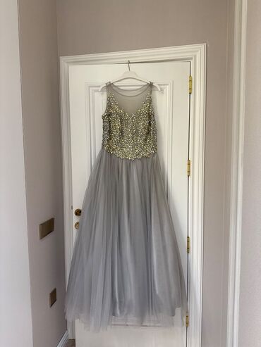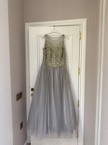 Zərif ziyafət/libas - Rəng: toz-çəhrayı (lilac tonlarında) - Model: uzun, A-kəsimli, yüngül flarlı ətək - Parça: şəffaf tül üst qat, incə romb naxışlı; altlıqla birlikdə - Yaxa: V-kəsim - Qol: 3/4...