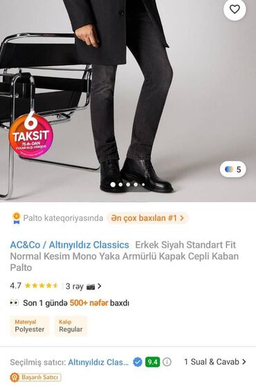Kişi üçün palto..mağazada satışı.150 manatdır.cox az geyinilib yeni kimidir