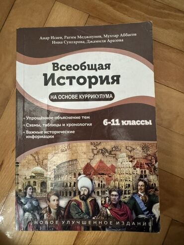 - Kitab 1: “Всеобщая История на основе куррикулума” (Anar İsaev). 2023–2024 nəşri, yeni dərsliklər əsasında hazırlanıb. Mövzuların sadələşdirilmiş izahı, sxemlər, cədvəllər və xronologiya, mühüm tarixi məlumatlar.