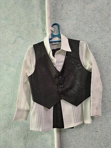 Uşaq üçün klassik kostyum dəsti - Rəng: Açıq boz - Dəst tərkibi: - Uzunqollu ağ köynək - Qalstuk-kəpənək (eyni material və rəngdə) - 3 düyməli jilet, sağ döş cibində dekorativ zəncir və bəz...