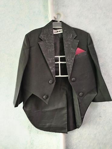 Uşaq kostyumu – qara rəngdə, klassik üslubda. 3 - 4 yaş - 2 parçadan ibarət: jaket və şalvar - Yəni “mandarin” (stend) yaxalı jaket, 4 iri düyməli - Jaketin 3 xarici cib detalları (1 sinə, 2 yan), ...