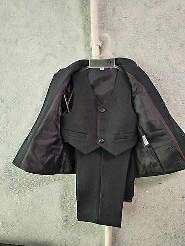 Cəmi 1 dəfə geyinilib. İdeal vəziyyətdədir. 140azn alınıb . Uşaq üçün klassik kostyum dəsti - Rəng: boz-qəhvəyi, xırda naxışlı parça - Komplekt: 2 düyməli pencək, 3 düyməli jilet, qara köynək, ey...